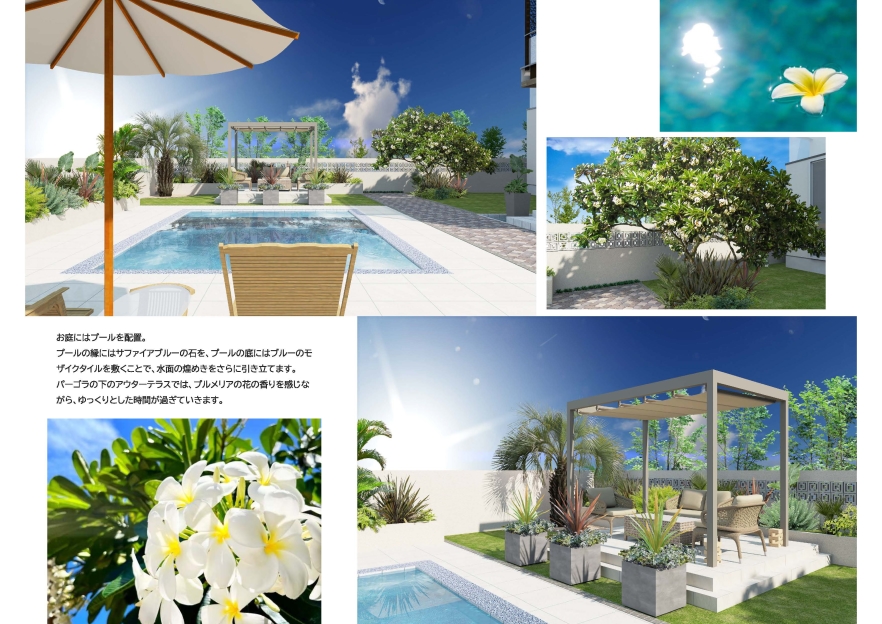 今回のプランは私自身がこんなリゾートがあったらいいなという漠然としたイメージから作り始めました。