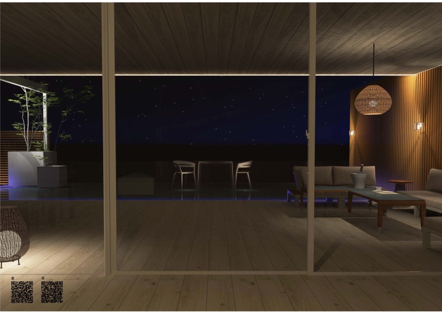 約1mの高低差が生むわずかな浮遊感や、反射・錆色・透明感の重なりが、自然と寄り添う暮らしに穏やかな余白をもたらします。