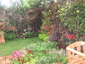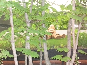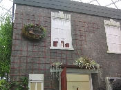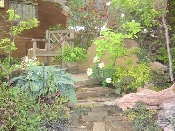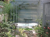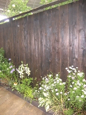 濃いトーンの板塀(実際はもっと黒かったです)の圧迫感を植物が和らげています