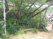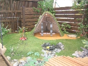 板塀の中の風景。床には鉄板。左に見える丸いオブジェは電気仕掛けで時々揺らぎます