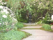 こちらは白で統一されたガーデン。大きなガラス玉の中央から水があふれて出ていました