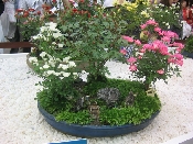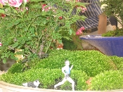 ミニバラの盆栽。フィギュアがあるので「マン盆栽」かもしれません
