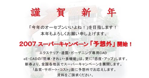 エクステリア造園CADユーザー様向け、07Direct 2/11版を発行いたしました。お年玉企画第2弾(eE-Painter)公開のお知らせ】他です。