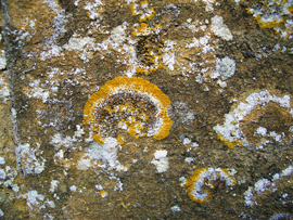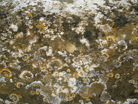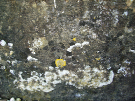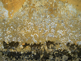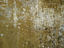 カビや雨水のシミ 外壁のライムストーンは 様々な色をしている。これは 一面の壁からとった写真である。