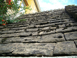屋根は天然スレートで さほど大きくはない。大きいものは きっと、売り物として都会の建物用に出して 残りの 安物で葺いていると 推測です。しかしこの 小ぶりな大きさがいい。壁に使っている ライムストーンと 大きさが合っているのです。壁のライムストーンも大きく立派なものではなく 小ぶりの安いものを使ったと思います。