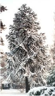 Common Name: Monkey Puzzle or Chilean Pineという名の木 お金持ちが何か好むという話でした。冬の雪景色になんとも美しく映えるようです。
