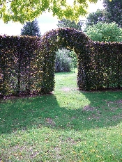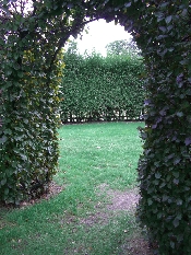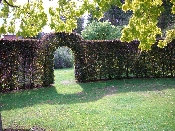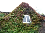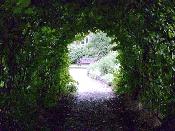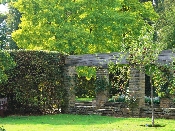 庭のスナップです。庭の隅に 緑のトンネルがありました。建物には つたが絡み 自然のたたずまいをみせていました。