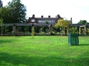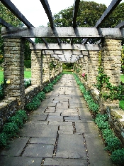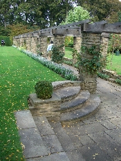 芝の庭は 上下2段になっています。その境に パーゴラがあって 2つの芝庭を分けています。段差をパーゴラによって 気になら名いようにしているのかもしれません。