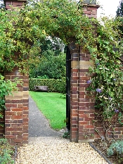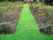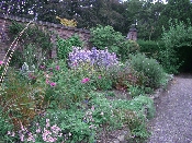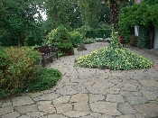 庭の道は 芝生と 小砂利である。小砂利はわれわれのイメージより歩きやすい。芝生が敷き詰められている道と 小砂利の道は どう区別されているのか定かではないが 植物をきれいに見せるための 面を整え 植え込んだ植物をきれいに見せるため 必要なのだと思う。