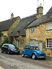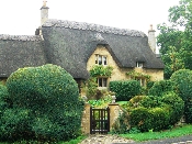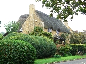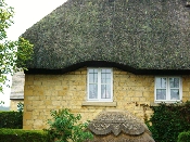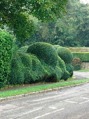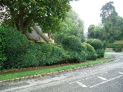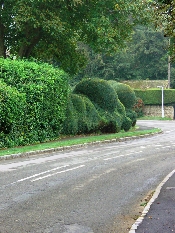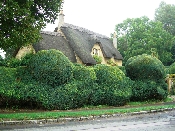 〔拡大図〕おお刈り込みが 面白そうと 思うその目に飛び込んできたのは 藁葺きの家でした。おとぎの国に迷い込んだような 不思議な感覚を味わえました。