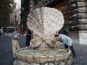 今回のお便りは、イタリアの首都ローマからです。お正月休みを利用して海外旅行に行かれる方もいらっしゃると思います。一足お先に行って参りました。近年問題となっている、異常気象のせいか、10月後半にも関わらず、昼間は28度を上回る蒸し暑い気候でした。ローマ市内のいたる所には、写真のような噴水があります。これらは16〜17世紀に著名な芸術家によって作られたものであり、今なお、街のシンボルとなっています。これらの噴水の水は飲料水としても使え、市民の喉を潤しています。