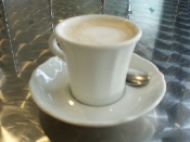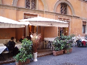 〔拡大図〕ローマ〜ナポリへ移動する際に立ち寄ったサービスエリア。カプチーノがおいしいで有名なのだとか。カプチーノをすすりながら、オープンテラスの正面にあるお庭を眺める事ができます。