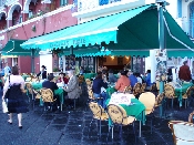 〔拡大図〕 ランチタイムは日本同様、混雑します。こちらのお店は鮮やかな色のオーニングを使用しています。港町のカフェで海鮮料理などが映えておいしいそうです。