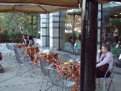 市内のカフェテリアは、ほとんどがこのようなオープンテラススタイルです。車の交通量は多いものの、石畳の道路とマッチしていて、お洒落です。