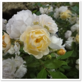 この日はあいにくの雨でしたが、皆さん傘をさしてバラの苗を品定め。 たくさんの苗を抱えてお買い物です。 | ![]() |