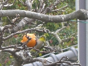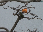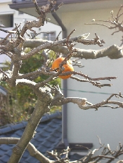 とにかく野鳥を庭に引き込む為に、庭にあるコブシの木枝にミカンを突き刺して待つことにしました。