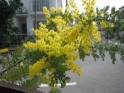 〔拡大図〕 |  〔拡大図〕 | アカシアとか銀葉アカシア、とかの類ですね。とても成長が早くて、大きくなるので広いお庭が必要ですが、本当にきれいなお花です。