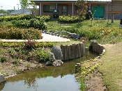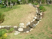 小さな滝から始まり、細くなったり広くなったり変化に富んだ擬似小川はとても自然な雰囲気です。蛙や小魚、鳥などを間近に見ることができたらどんなに楽しいでしょう。