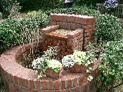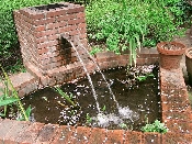 こちらもレンガ製水栓、滝タイプです。今は枯れていますが水棲植物などが育つと雰囲気がやわらかくなります。