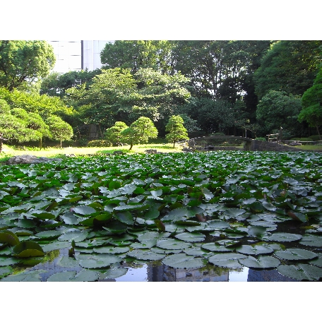 ![]() いざ、庭園へ。 | ![]() 入って正面にシダレサクラや池、山などが広がっていました。 浜離宮や六義園に比べて、ちょっとこじんまりした印象。 |