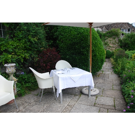 ホテルの南に面する庭には 有名な ノット・ガーデンがあります。大きさは(幅7m 奥行き5m)テラスの幅で作られていました。4隅には トピアリーでアクセントをつけてノット・ガーデンをより強調するデザインです。