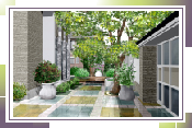 建物に合わせ、角型アートパネルで主客門付カーゲートと塀(水周り部分)のデザインを揃えました。アプローチは、玄関周りと中庭のすべてを石貼り(2色鏡面)にし、イメージ以上の拡がり(静けさ)を演出しました。