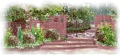 ■ 1.平面図 /R系色の「レンガ塀」と床の「カラーコンクリート」仕様に「石部分貼り」を加えてエレガンス感を貫いたアプローチ。門扉もエレガンスイメージで統一。将来、二世帯の暮らしが始まる通路を東面道路側の塀に向かって設えてあるのが特長。〔拡大図〕
