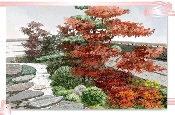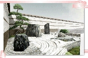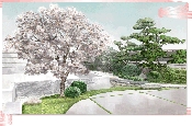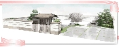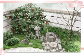 ■ 1.平面図 /数奇屋風門扉と目地入りの塀は、色と素材でモダンにアレンジ。各庭には季節感のある植栽を選びました。〔拡大図〕