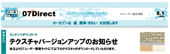 07Directメールマガジンは、オーセブンCADユーザー様限定のメールマガジンです。