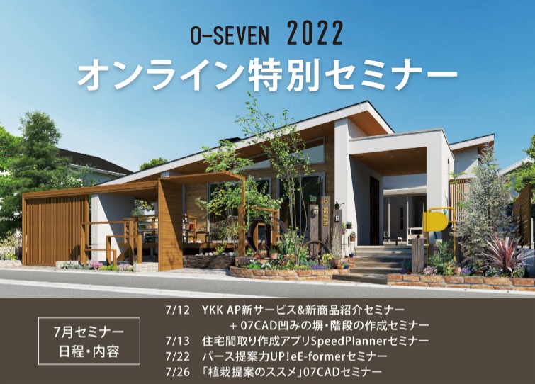 7/12(火) 15:00〜16:00 無料 | YKK AP新サービス&新商品紹介セミナー + 07CAD 凹みの塀・階段の作成セミナー YKK APの便利な新サービスと2022年度”オシ”の新商品をご紹介させていただきます。 是非この機会に最新の情報を得て日々お仕事にお役立てください。 CADセミナーでは、07CAD1.5からご使用いただける「ふかし壁」の作成と07CAD3.5の新機能「蹴込階段」の 操作をご案内します。 |