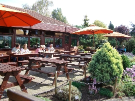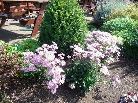 ガーデンセンターは レストランが付き物で お茶やお菓子、スープなどその店の売りがあるそうです。お買い物だけでなく ゆっくりと お茶をして ゆとりを楽しんでいる様子です。