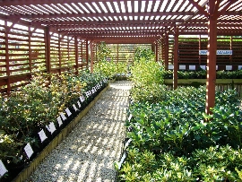 〔拡大図〕サンプルとして展示してある植物には ネームプレートが付いています。見て回っていると これがいいと思っても 名前が出なければ 買うに買えない。