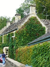 屋根と壁と開口部がすべて 同じ色で 出来ている。こんな建物は世界で探してもそんなにない。それがカビやコケで色を自然になじませてくる。屋根は自然石のスレートでありながら 鼻先や破風の軽く薄く見えるディテールから威圧感をたたえないデザインになっている。(雨樋は後世の仕事だとおもうのですが)