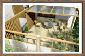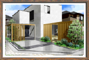 シンプルモダンでスクエアな建物に合わせて、オリジナル性の高い、アウトドアガーデンユニットを組み合わせました。程よくプライベートな空間も守られ、自宅に居ながら、リゾート感覚も楽しめるプランです。