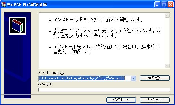 下記のような画面が出てきます。 インストールボタンを押してください。解凍されます。 |