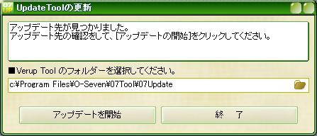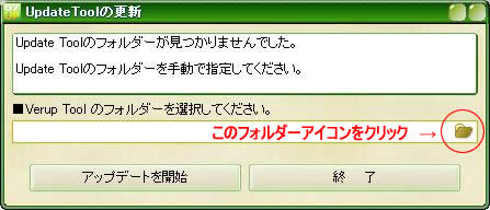フォルダーアイコンをクリックして、UpdataToolの入っているフォルダーを指定