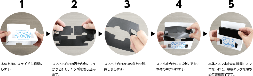 テープ・接着剤なしで、組み立てることができます。組み立て方の説明書がパッケージの中に入っているので、その場ですぐVRを楽しむことができます。