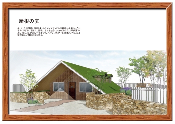 アイスランドの伝統的な家屋をモチーフに、屋根部分も含めた庭をデザインした。草の生える屋根は冬は暖かく、夏は涼しい。いつか日本でもスタンダードになり得る庭と家の新しい関係を表現したかった。