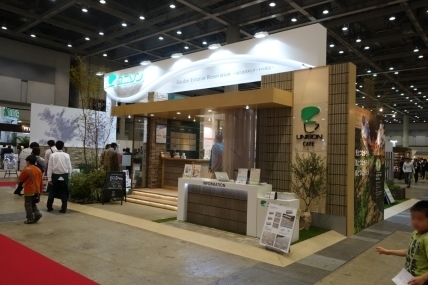 ![]() | ガーデンエクステリア建材メーカーのタカショーブースです。近年はガーデンエクステリアのジャンルに留まらない商品展開を見せ、総合エクステリア建材メーカーと呼んでも差し支えのないラインナップです。今回は、建築外装材や門扉フェンス、車庫前門扉も大々的に展示。 |
