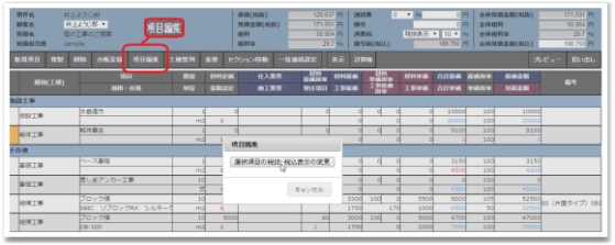 タブレット/スマートフォン端末で、項目行を選択した状態で項目編集ボタンをクリックするとダイアログが開き、各メニューコマンドが出てくるようになります。