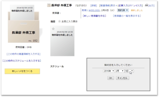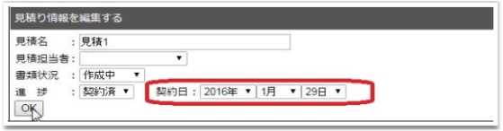 今回のアップデートでは、ご要望をいただいておりました、契約日、見積日を入力できるようになります。