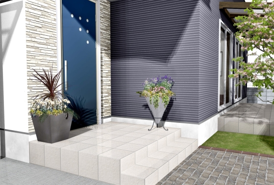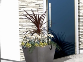 (玄関前のコンテナの装飾に使用しています。コルディリネとラベンダーはフォト樹木です。)