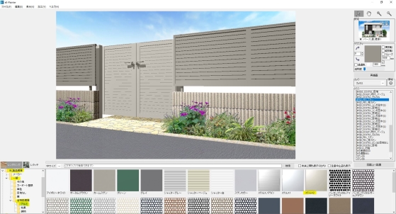 ![]() | 目隠しタイプの金物でよくありがちな「のっぺり感」 eE-Painterのあるテクスチャを貼ると解消できます。 |