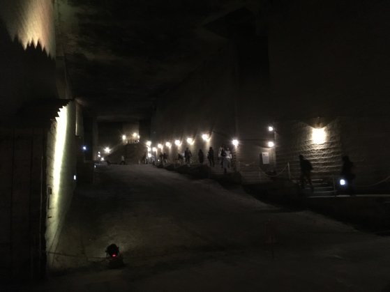 入り口から階段をどんどん下っていきます。この日の坑内の気温は6℃。ダウンジャケットが欲しくなる寒さです。歩いているうちに手が冷たくなってきますので、手袋もあると快適です。長居されたい方は注意が必要です。