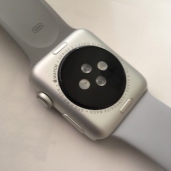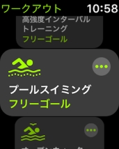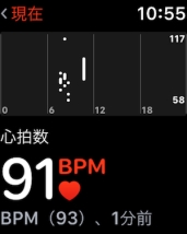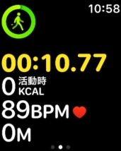 ![]() 裏面のセンサーから脈拍数を感知。機能的には血中酸素濃度も測れそうですが、医療機器の認可の問題もあってまだ未搭載。 | ![]() ワークアウトという、各種運動の管理ツール。お馴染みのウォーキングやランニングの他、スイミング、スキーなどにも対応。 | ![]() ウォーキングのワークアウト中表示画面。経過時間や心拍数の増加、移動距離などチェック。目標を決めてそれに到達したらアラートを出す、そんな使い方も可能です。 |