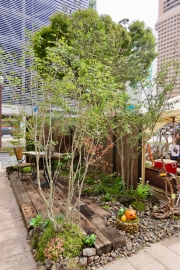 | 今回の作品の中では、意外にも少なかった雑木をメインにした庭。縦長の、どちらかというとモデルガーデンを制作するには不向きな空間をうまくレイアウトして、奥行を出すことに成功しています。テーブルウェアや、ハロウィンの小物の使い方も上手いですね。季節感溢れる素敵な小庭に仕上がっています。 | ![]() |