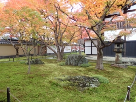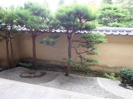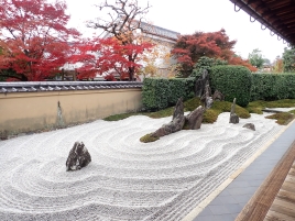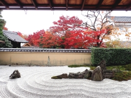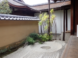最初に訪れた『大徳寺』中で最古の「龍源院」は「洛北の苔寺」とも言われ、重要文化財の方丈、唐門、表門は創建当時のままです。お庭は、方丈を中心に、南側の「一枝坦」、北側の「龍吟庭」、東側の「壺石庭」、庫裡南の「阿吽の石庭(こ沱底 )」、「開祖堂前庭」の5つがあります。