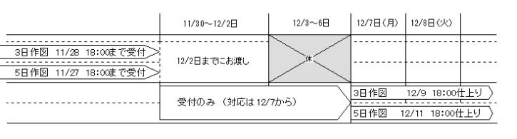 2020年11月28日(土) 18:00までにご依頼ください。