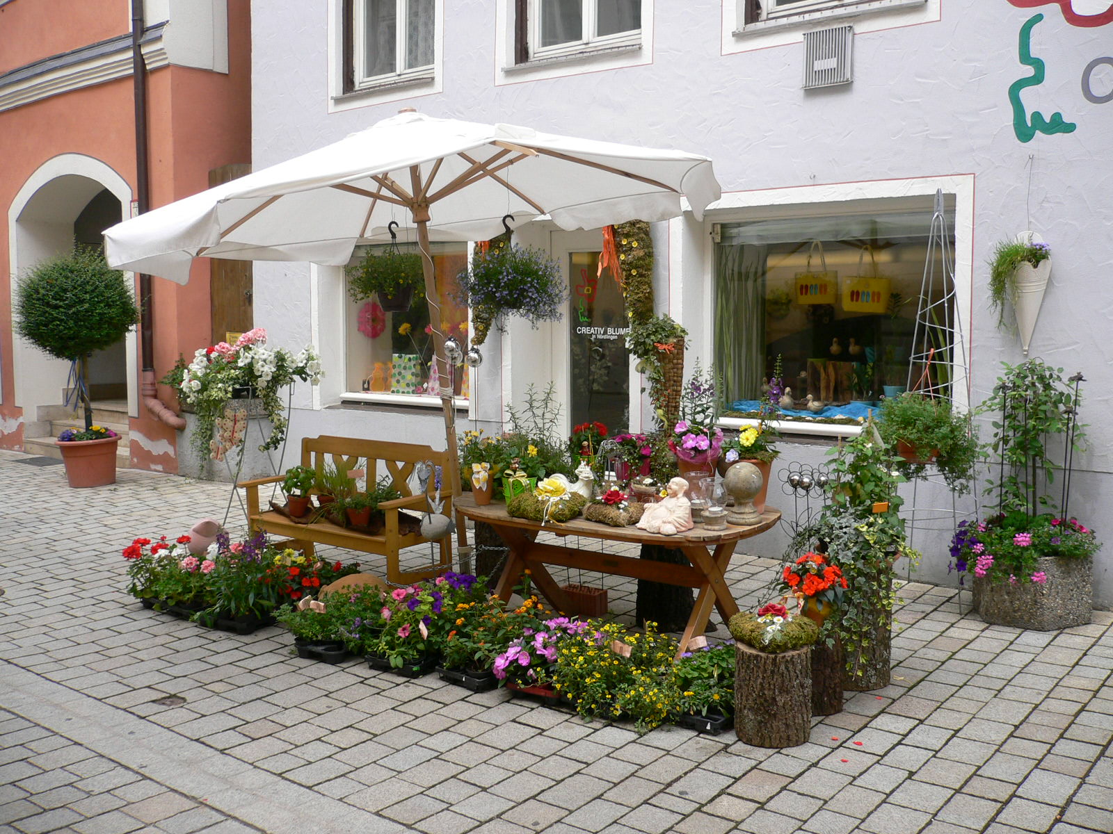 歩道に、家の前にたくさんでています。これは「お店」ではなく、家の人が育てている花などを飾っているのです。(びっくり!) 年配の方が多い田舎町ならではですが、皆で町を作る感性がうらやましく思えました。