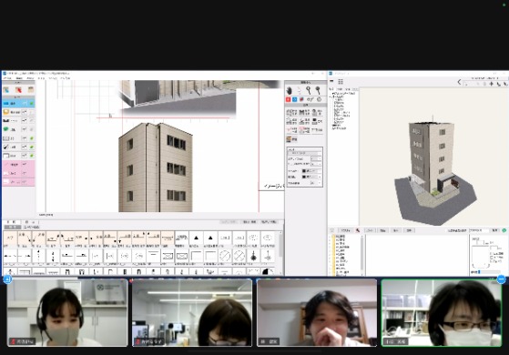 設計部に配属の6人は連日パソコンとにらめっこです。どの顔も真剣そのもので、一刻も早くCADをマスターしようとする意気込みや、できるかな?といった不安も同時に感じます。zoomでなければこのような表情も見ることはできなかったでしょう。